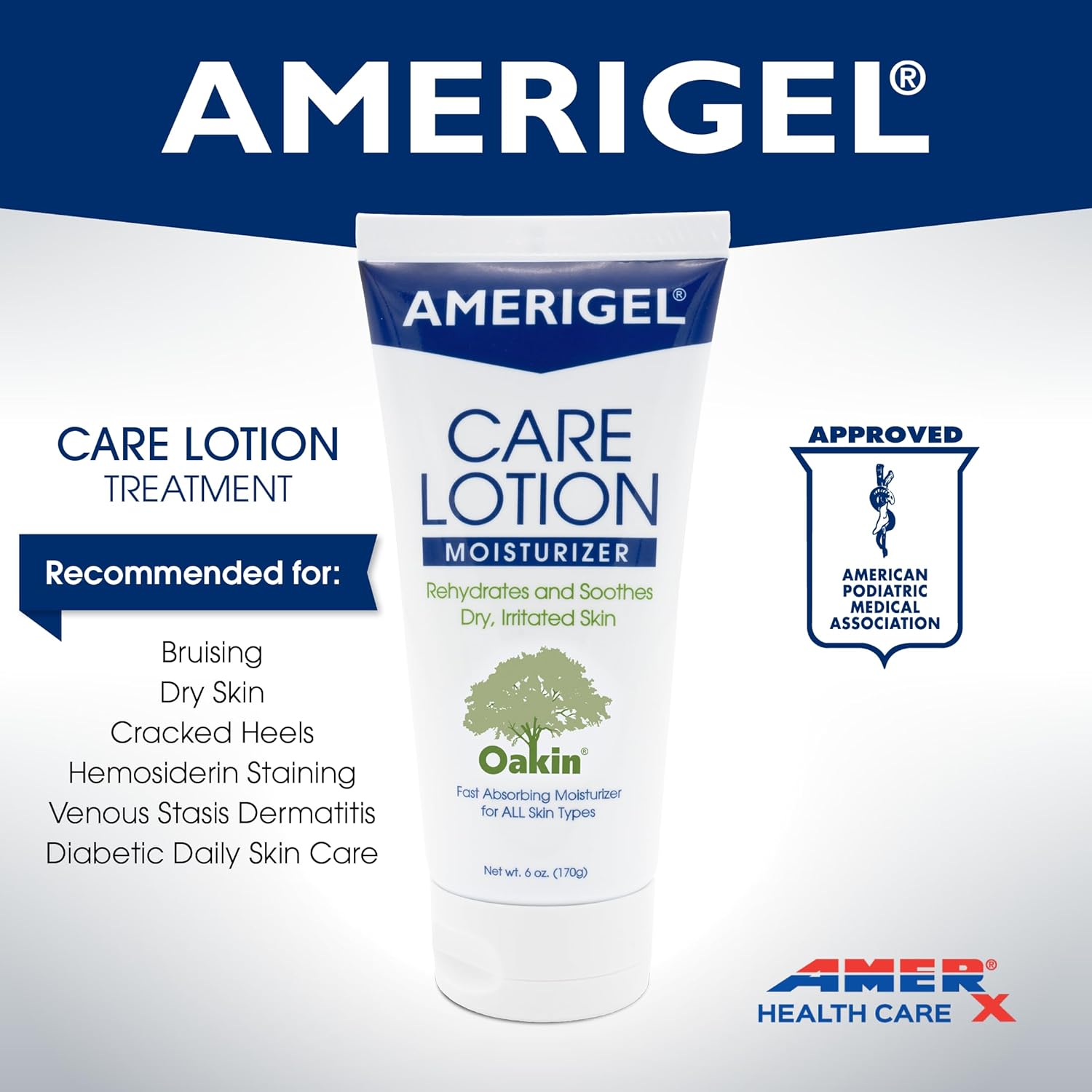 AMERIGEL Care Lotion – Hypoallergenic Moisturizer - Diabetic Skin Care - Rehydrates and Soothes Dry, Irritated Skin - 6 oz.