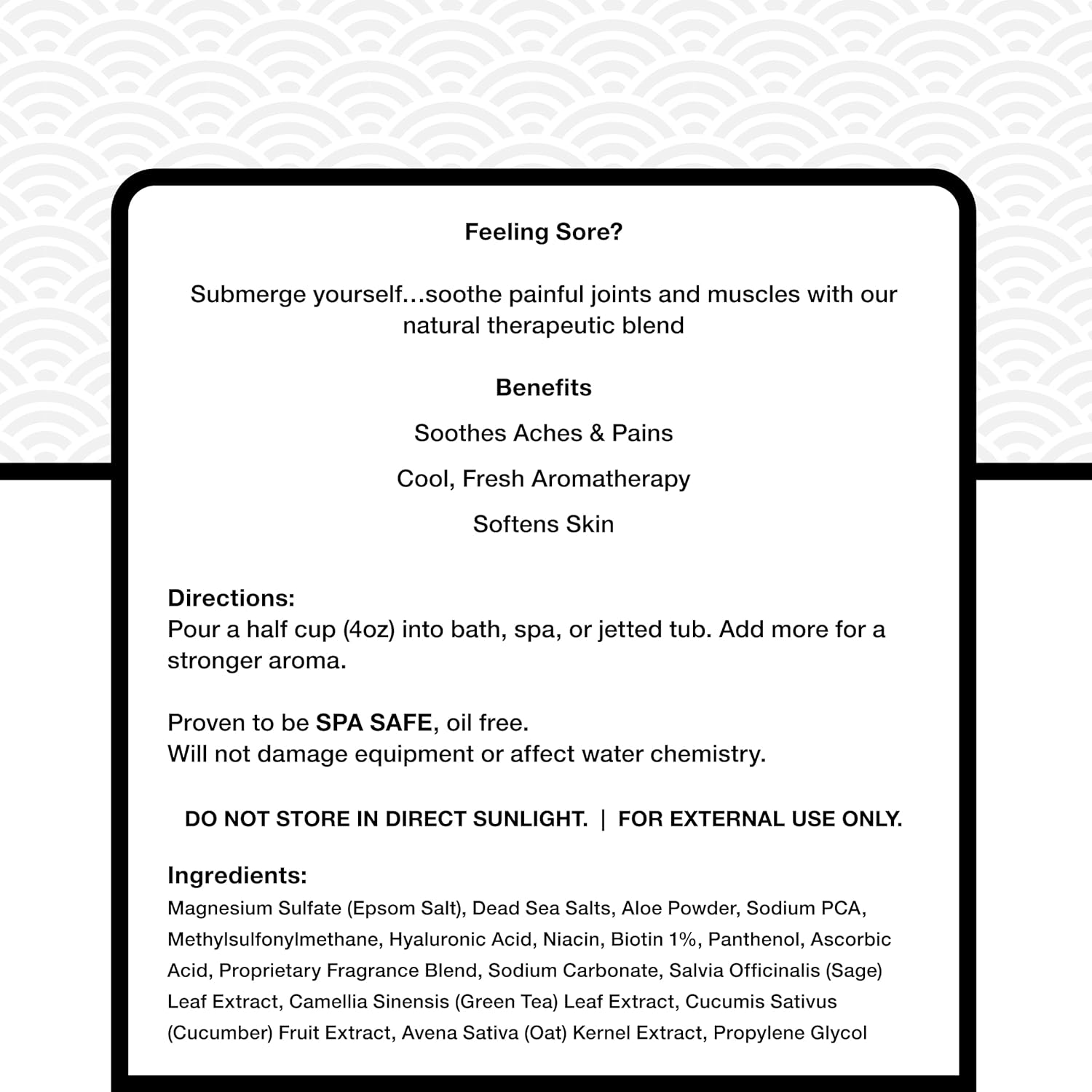 - MINERAL-RICH BLEND FOR RECOVERY RITUALS: Formulated with magnesium-rich Epsom & Dead Sea salts, this clean-dissolving blend complements your post-activity soak without leaving any residue or disrupting your spa’s balance.