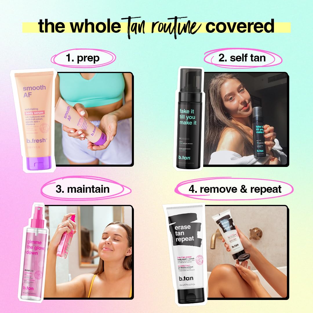 b.tan Dark Self Tanner Mousse | Fake It Till You Make It - Best 1 Hour Express Sunless Tanning Foam, Gold Bronzing Glow, Face & Body, No Fake Tan Smell, 6.7 Fl Oz
