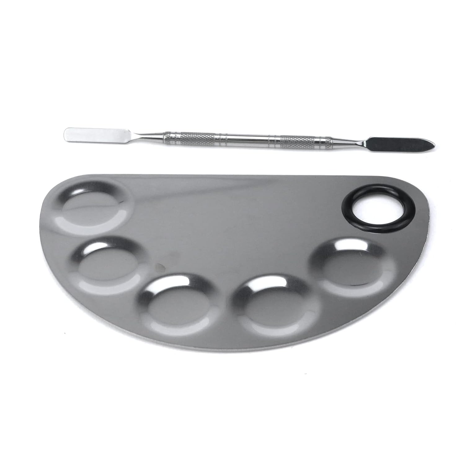 Stainless Steel Professional Beauty Palette,Large Square and Half Moon Color Palette,Silver,with Color Stick,1 SET
