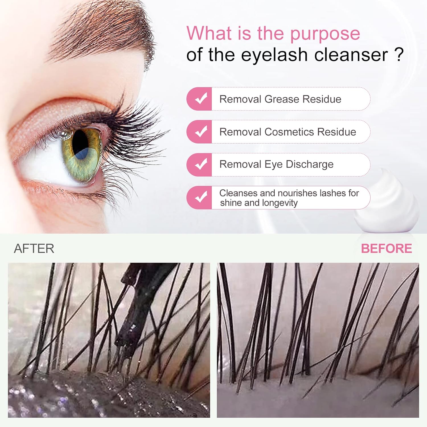 - Our eyelash shampoo for lash extensions aims to create the top brand of eyelash cleaning concentrate used in professional grade salons, excellent quality and price is our action, attentive and professional service is our guarantee, if you have any questions about the product, you can consult us, we guarantee that we will give you a reply within 24 hours!