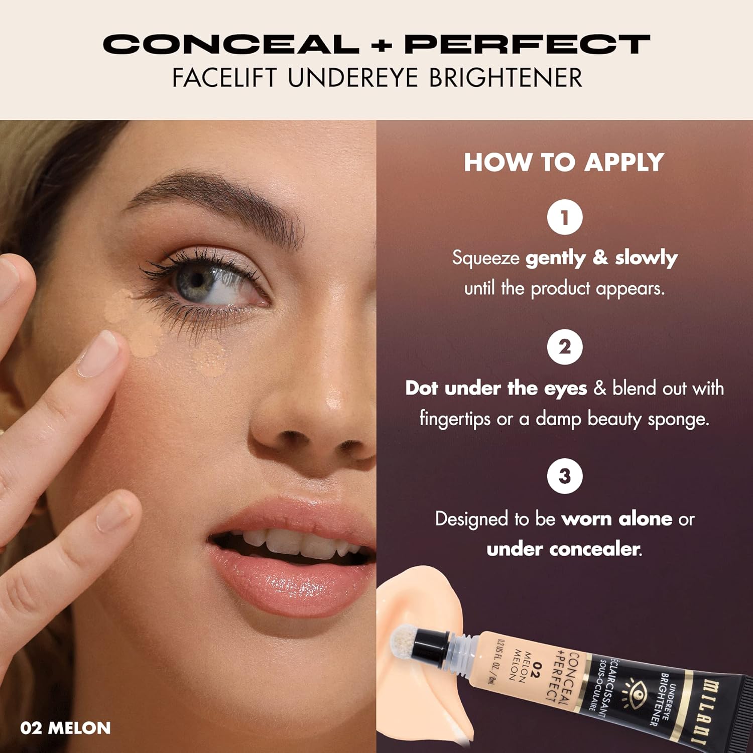 - Lightly tinted, silky-smooth formula designed to instantly brighten dark circles and hydrate under the eyes in a single swipe