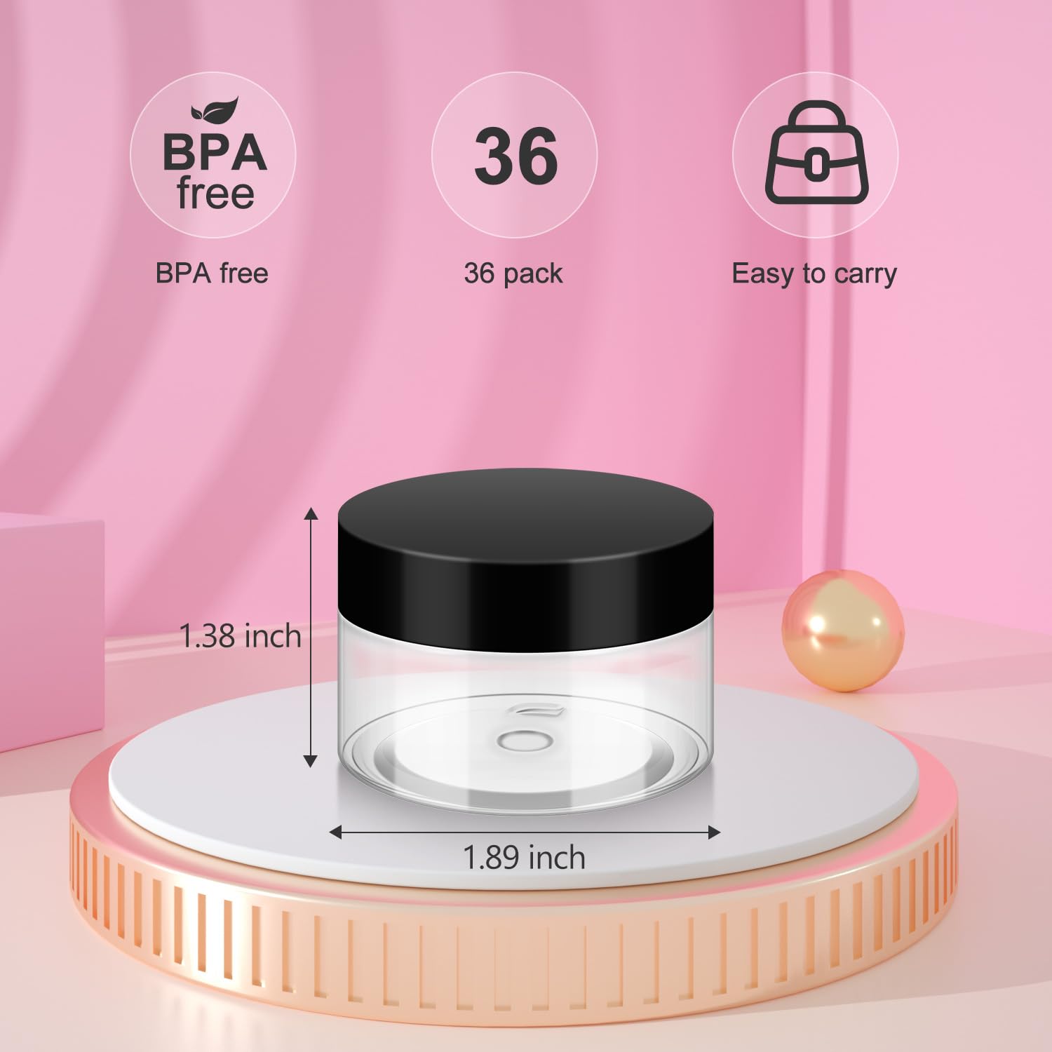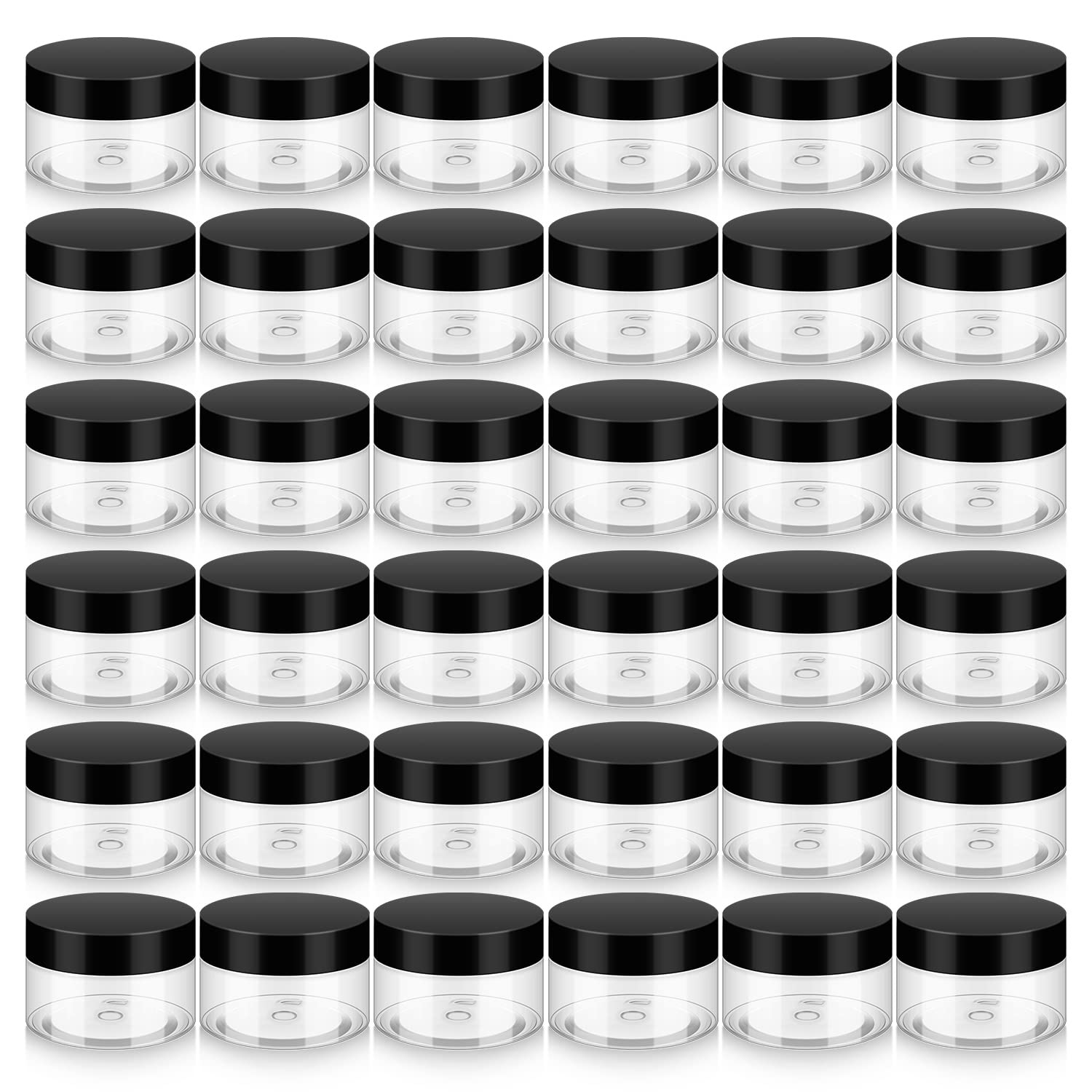 36 Pack 1 OZ Plastic Jars with Lids, BPA Free, Reusable, Refillable Transparent Cosmetic Containers for Bath Salts, Cosmetics, Powders, Beauty Product and Small Accessories