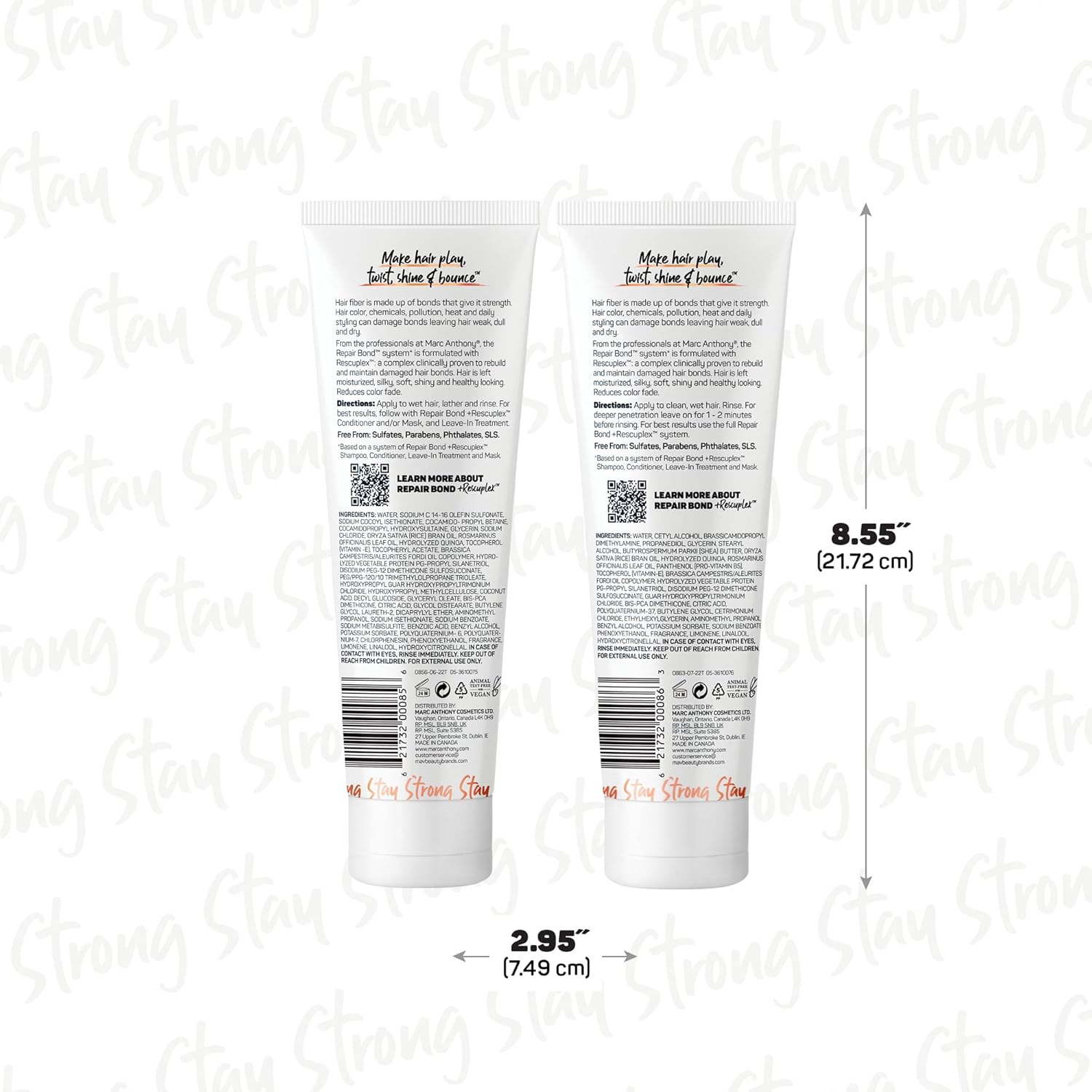 - Repair Bond +Rescuplex Shampoo & Conditioner Set: Hair fiber is made up of bonds that give it strength, which can be damaged by things like hair color, daily styling, and pollution. As part of the Marc Anthony Repair Bond +Rescuplex system, this shampoo and conditioner set protects disulfide bonds from initial damage, rebuilds bonds and strengthens hair. 8.4 fl oz each.