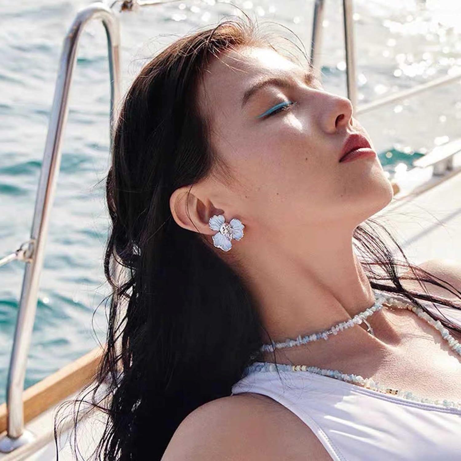 Unique Blue Flower Earrings Studs Vintage Floral Petal Earrings Statement French Blue Iris Flower Earrings Studs Bridal Wedding Prom Earrings Jewelry for Women