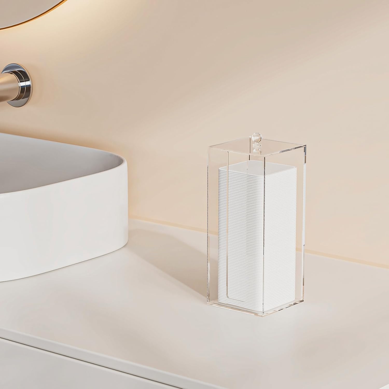- 【Perfect for Vanity】: This acrylic cotton pad dispenser enhances any vanity, keeping accessories organized and within reach. The elegant design offers easy access and storage, making it a stylish addition to your setup.