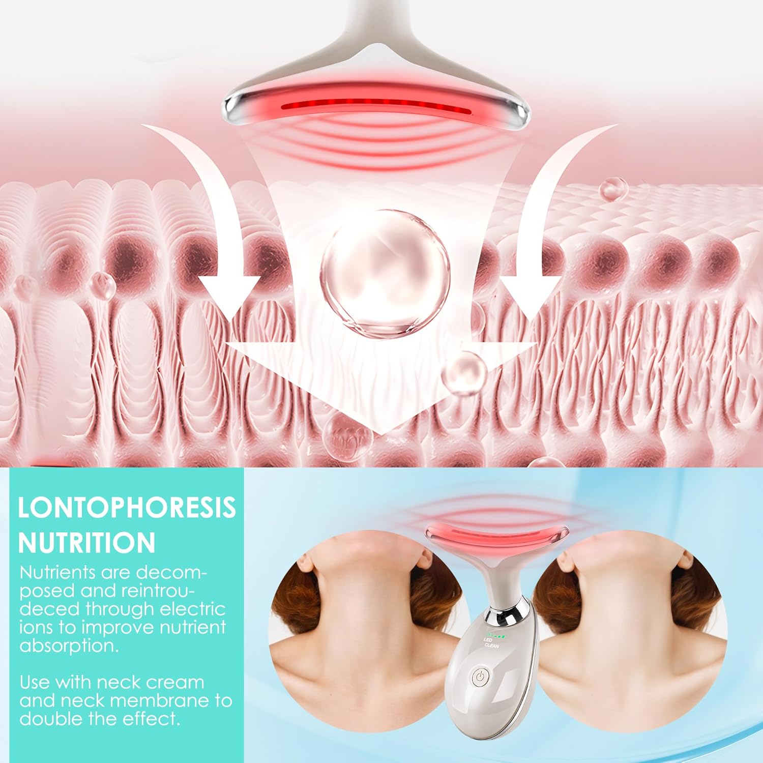 - The uniquely curved Arc massage head effortlessly glides along your face, helping to improve absorption of creams and lotions