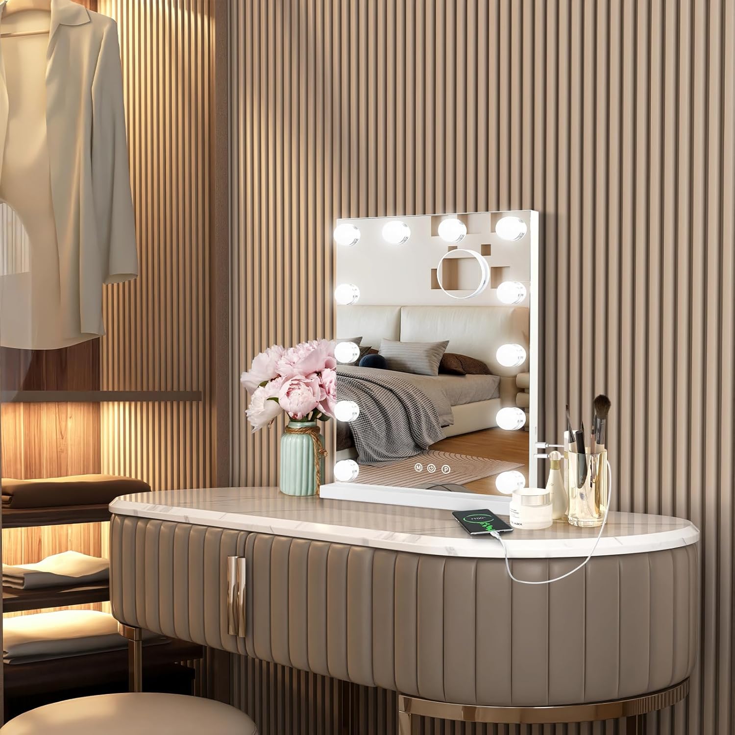 - 【USB Charging Port】 Our vanity mirror has A USB Type C charging port(12V, 1A) on the side of the Hollywood vanity mirror provides convenient charging for your phone/pad.