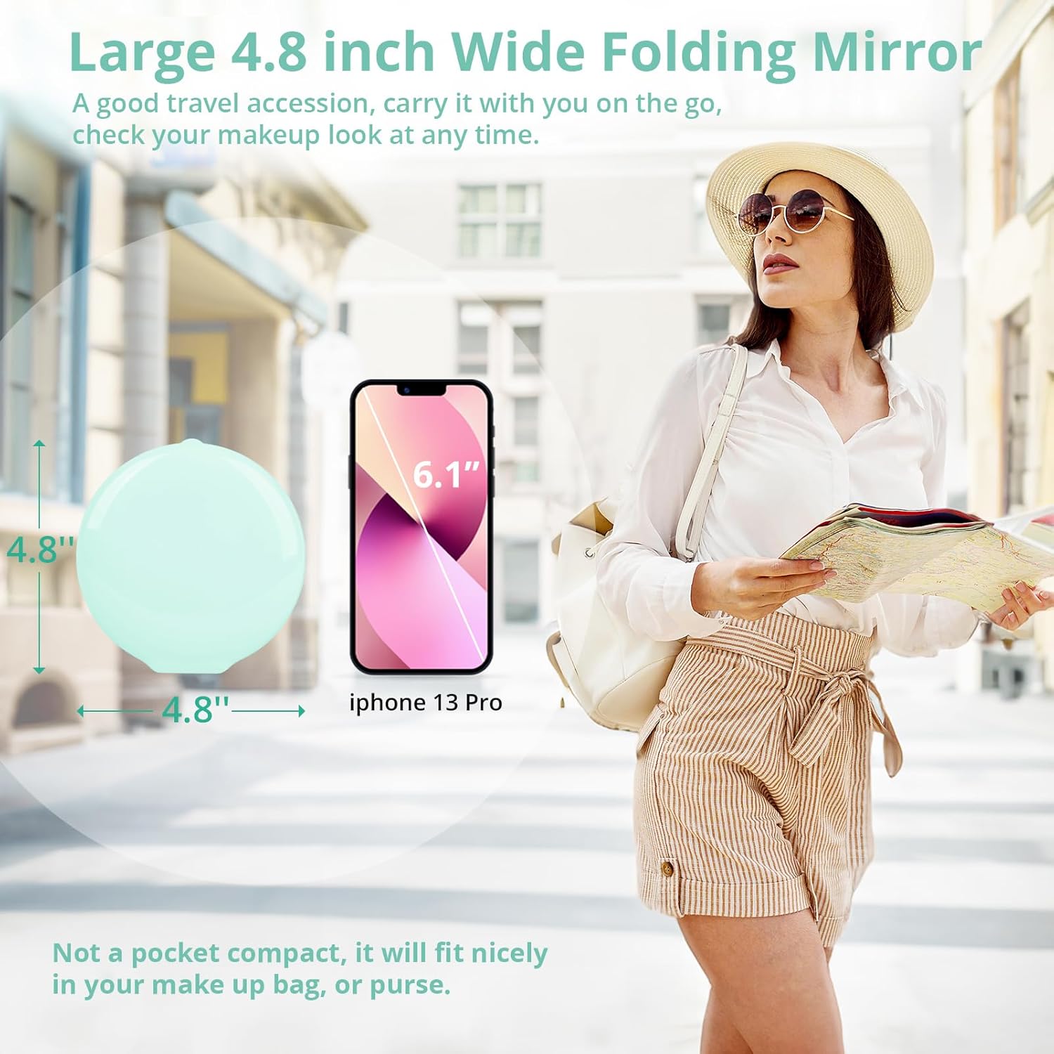 - Travel Essentials for Women: Folding travel mirror has a cute size to fits backpack, purse, bag, luggage. You could carry it on the go for traveling, business trip, road trip, camping etc. Check your makeup anytime and anywhere to make sure your makeup stays in perfect condition. A must have travel gift for women