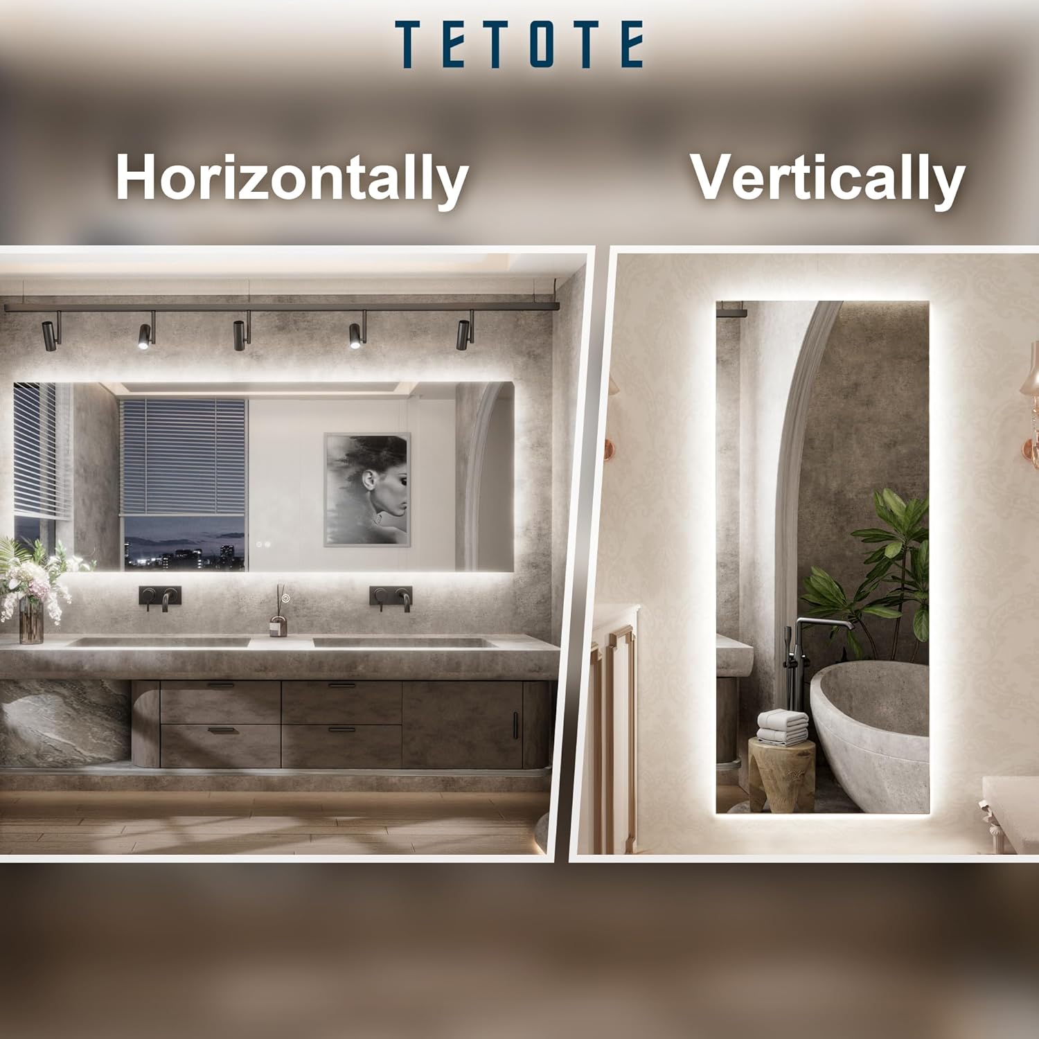 TETOTE 84 x 32 Inch LED Backlit Bathroom Mirror with Lights,Anti-Fog,Dimmable Lighted Mirror(Horizontal/Vertical) Wall Mounted Vanity Mordern Mirror