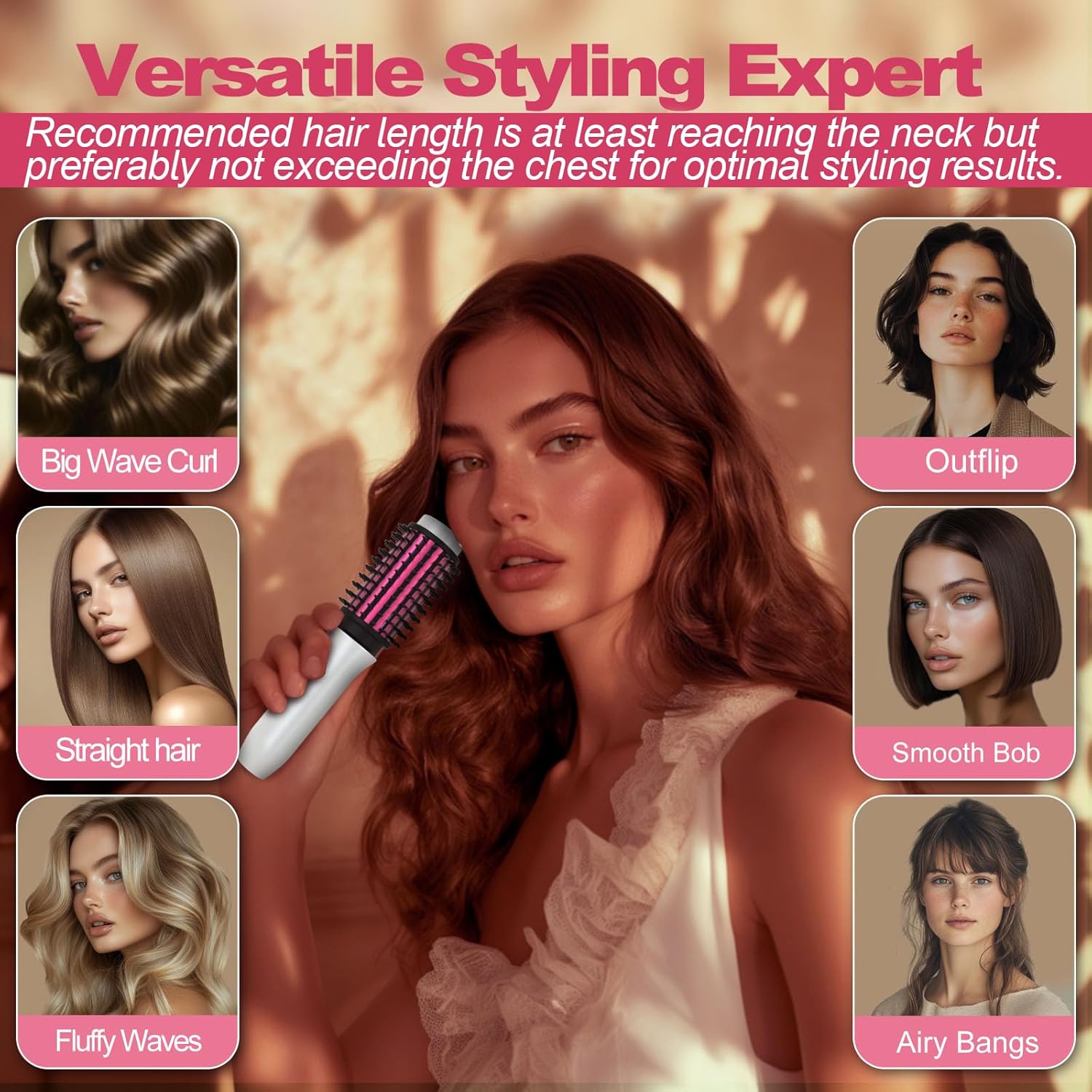 - Shape : Round curling brush wand - No Automatic Rotation