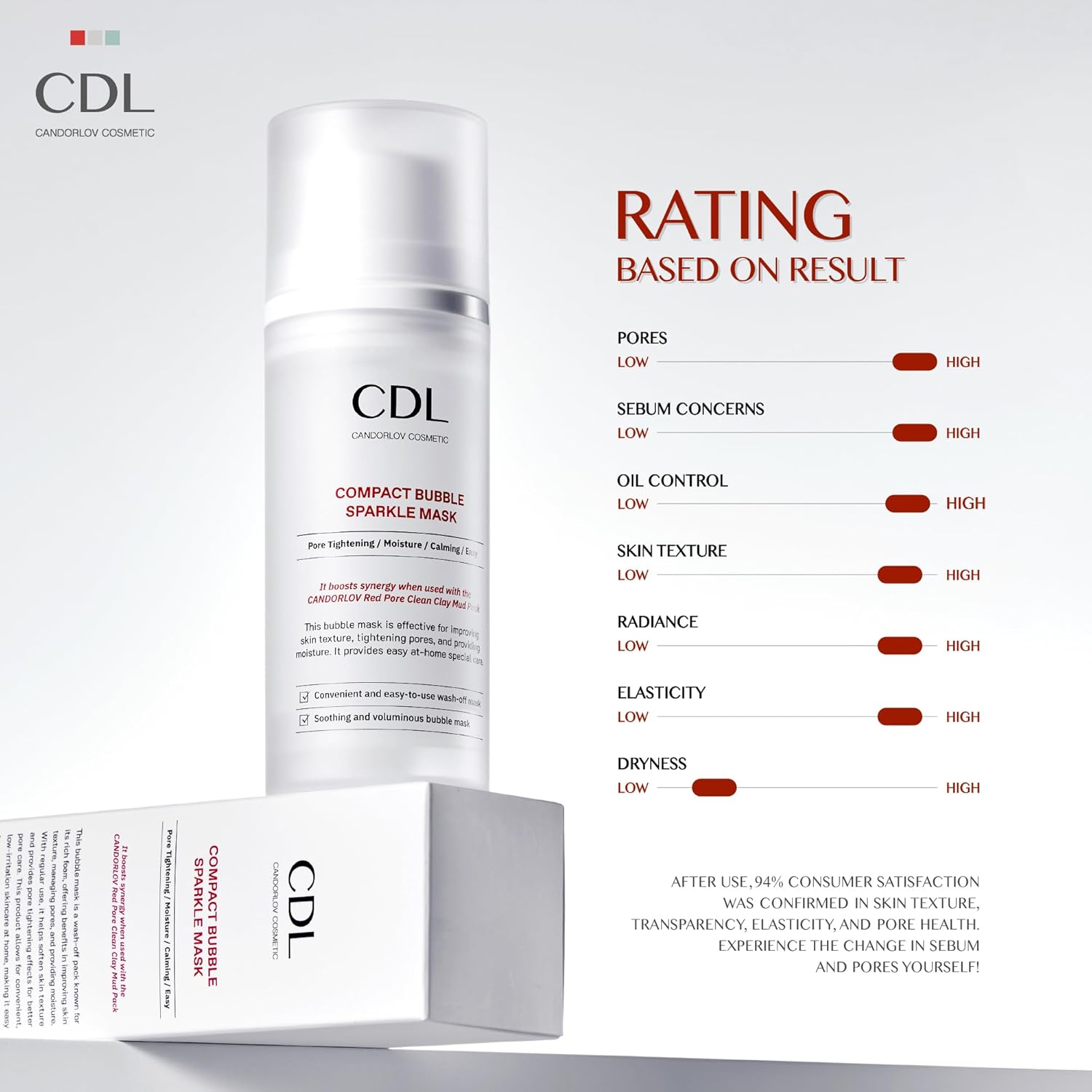 - Bubble Pore Tightening: The first rich foam deeply cleanses your skin, while the second, denser bubble layer helps hydrate and tighten pores. With just one use, enjoy a 27.64% reduction in pore size.