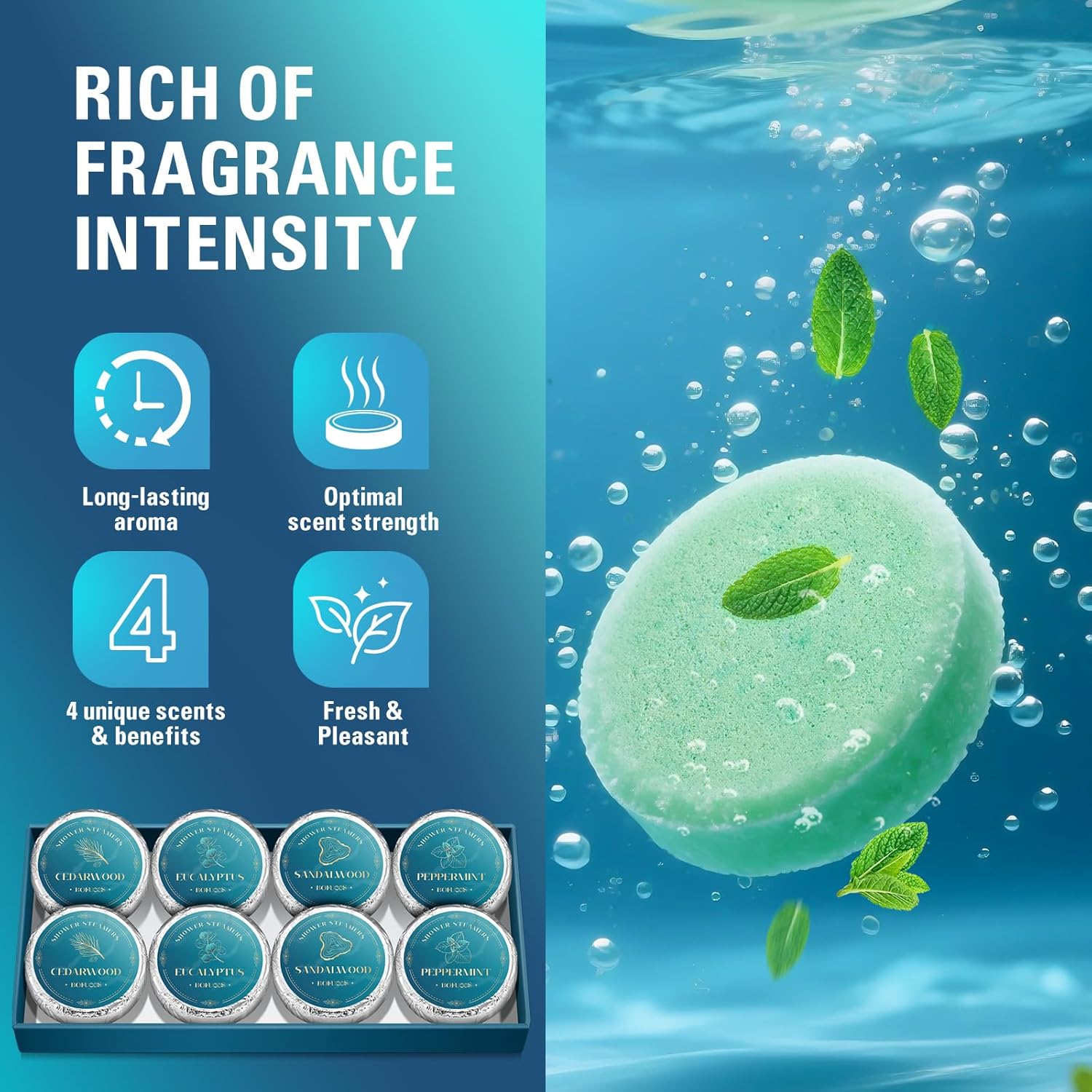 - Variety of Scents: Choose from an array of scents including Cedarwood, Sandalwood, Eucalyptus, and Peppermint. The diverse selection caters to different preferences, making these shower steamers ideal gifts for men, teens, and dads on special occasions like birthdays and Father’s Day.