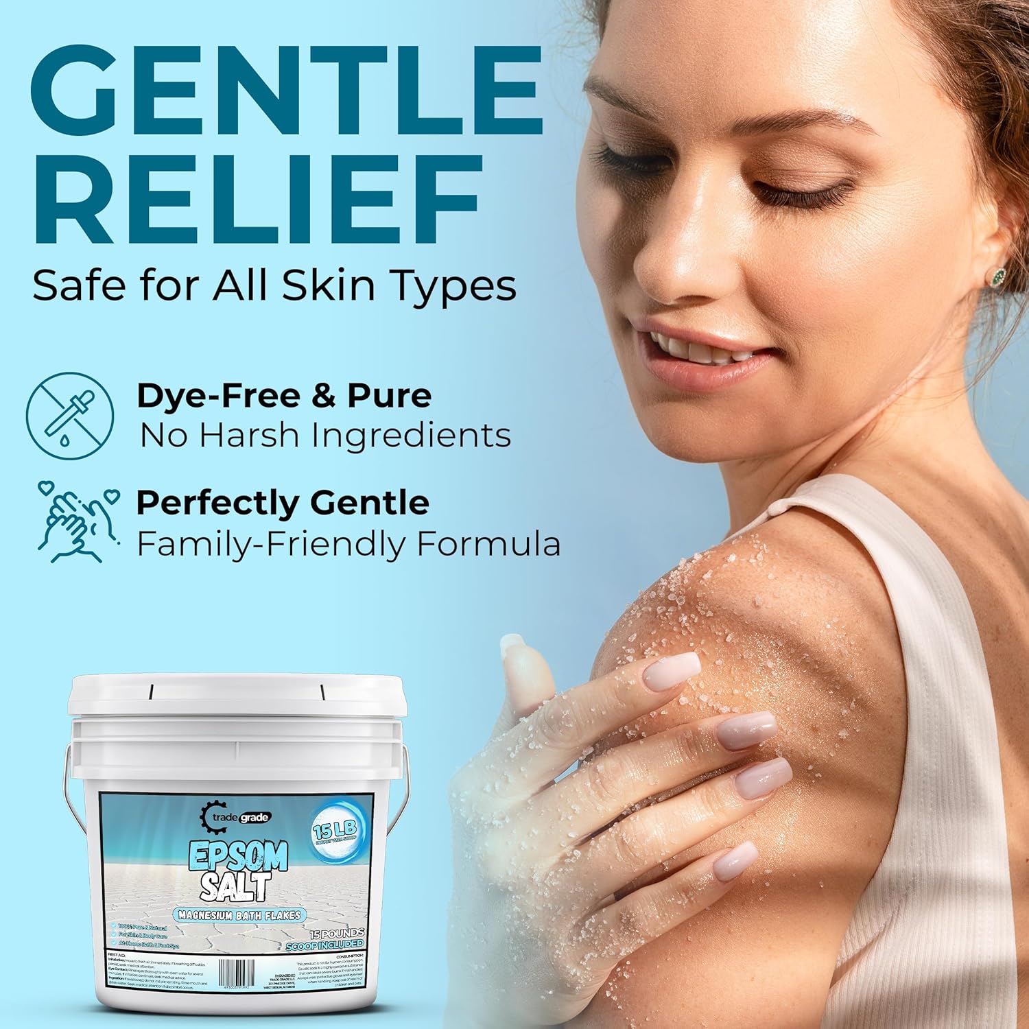 Epsom Salt Bath Soak 15 lb Bucket – Unscented, Pure Epsom Salt Bulk Crystals, Magnesium Sulfate for Full Body or Foot Soaks, Resealable Container with Scoop for Home Bath Use