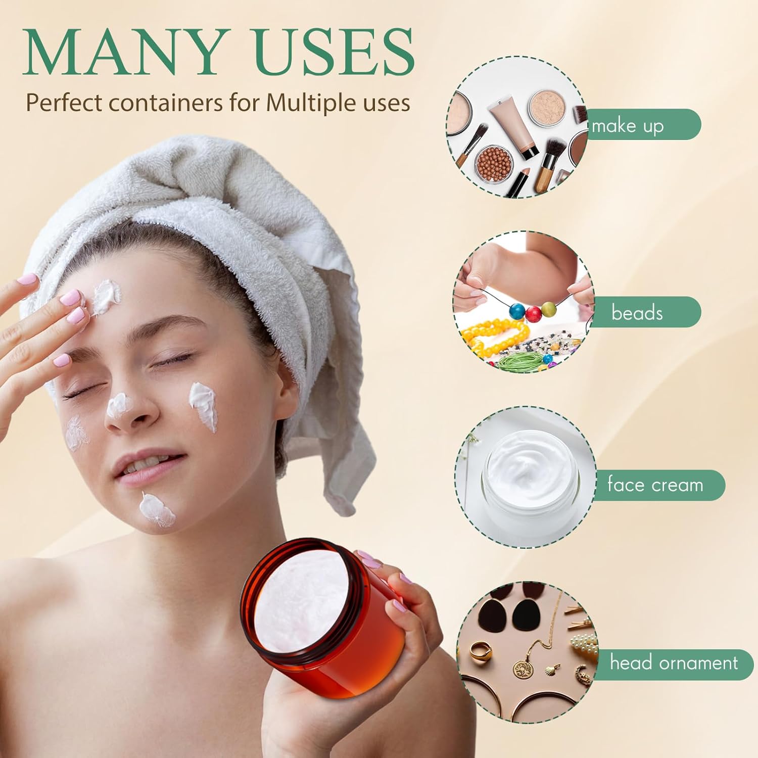 Patelai 4 Pieces Round Wide-mouth Leak Proof Plastic Container Jars with Lids for Travel Storage Makeup Beauty Products Face Creams Oils Salves Ointments DIY Making(6 Ounce,Amber)