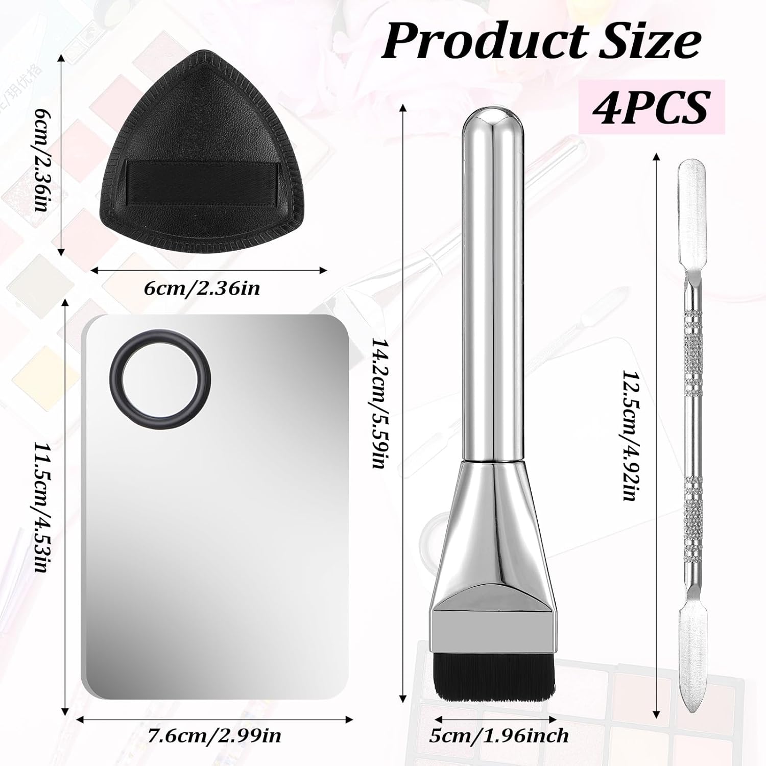 - Complete Makeup Mixing Palette Tray Set: Includes 1 professional-grade stainless steel palette, 1 multi-functional double-ended spatula, 1 powder puff, 1 makeup brush for all your makeup needs.