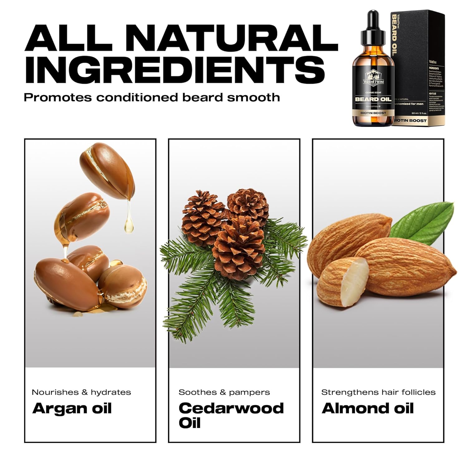 - Cedarwood Beard Hydration: Waking Forest Cedarwood Beard Oil is your top choice for moisturizing coarse facial hair and alleviating dry skin. This cedarwood-infused beard oil softens the texture of your beard, eases dryness, and ensures your beard stays smooth, lustrous, and healthy-looking throughout the day.